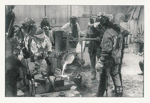 It's “hot, dirty, heavy, and sweaty and women do it!" Lisa Elias, Phoebe Adams, Judith Shea and Cynthia Dickinson pour molten iron at the Women, Fire and Iron Conference held this spring at the University of Minnesota. (Photo: Katherine McVety) FINDING THE SACRED IN POURING IRON WOMEN, FIRE AND IRON CONFERENCE 1993 by Rosemary Hultman It was an unseasonably chilly, rainy day as I walked across campus to join the already-in-progress conference. I knew nothing of casting metal, but, as an artist, jumped at the chance to expand my knowledge by participating in a project whose brochure stated, “It's hot, dirty, heavy, sweaty, and women don't do it.” As I felt the energy that filled the lecture hall, I knew I was with a group of like-minded women who rose to the challenge. The two days of lectures allowed me to hear women sharing their experience and expertise of living a life of expanding boundaries. Going beyond the norm and challenging the system is a normal part of everyday life for these women. On day three, the day of the actual iron pour, the rain increased. The two cupolas (furnaces) outside were shut down. Everyone would work inside in shifts. My team was scheduled to meet fully suited at 4:20 p.m. Until then I looked for helmet, face mask, leather chaps, mitts and jacket to protect me from the 2900 degree heat of furnace and liquid iron. I watched from the sidelines as teams of women filled the foundry floor working with the precision of a well-disciplined dance. It was a ritual of fire, a liturgy of harnessing the spiritual power of nature. As the first fiery yellow gold liquid poured out from the cupola there were shouts of joy as full of praise as any halleluja or amen. My friend was suited and waiting for her team to begin. She was pale, terrified, wondering why she was participating in this completely new and unknown experience. Her dread would not allow her to join her team- mates in eating before the work began. It was a fear not unlike being face to face with the "mysterium tremendum", for she was about to transcend the world of ordinary experience. Her job was to help carry the heavy crucibles of hot liquid metal to be poured in the molds. Observing from the sidelines was like watching a movie. Joining my team on the floor I felt a thrill of heightened senses, increased focus and alertness. My leader trembled a shudder of fear that went to the core of her soul as she prepared to face her fear of fire as we charged the furnace with coke and iron. As the lid of the cupola was raised, the heat of 2900 degrees hit my face hard through the mask. I held my lips tightly together and feared my safety glasses would melt on my face. The asbestos gloves smoldered and the heat seeped through the leather chaps to my legs as we worked in tandem so as not to knock each other off the tiny platform. We did it again and again, each time better than the last, each time with the thrill of facing and going beyond fear. We were hot, sweaty, dirty, with muscles trembling from the weight lifted and carried. We were women and we did it! As I joined my friend breaking apart her mold to see the cast iron sculpture she had designed I could see her face was full of light. I saw in her what we were all experiencing --the bliss of something being awakened in the spirit. To know the spiritual experience of an iron pour requires getting hot, sweaty, dirty and tired with a team on the foundry floor. Editor's note: WARM was pleased to host the celebratory reception for the University of Minnesota Studio Art Department and School of the Art Institute of Chicago's Women, Fire, and Iron Conference held May 21-23, 1993. Assisting were Maureen Bums-Bowie, Rosemary Hultman, Rebecca Pavlenko, Kathryn Rosebear, Rosemary Smith, Jan Thurston-Davis, Jane Waldoch, Phyllis Wiener, and Chris Wilson. Thanks! |
